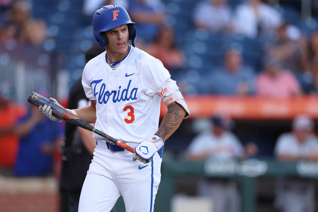 Jones arrived at Florida as one of the more coveted transfers in the country after a breakout freshman season at Stetson in 2024. He hit .355, totaled 20 extra-base hits, drove in 32 runs and stole 23 bases, earning ASUN Freshman of the Year honors and quickly drawing attention for his bat-to-ball skills and athleticism.