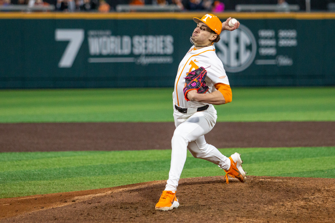 Right-hander Tegan Kuhns benefited from steady run support across four of the first five innings as he opened the season as Tennessee’s Friday starter.
